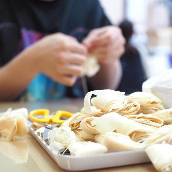 ・一つひとつ丁寧に手作業で仕上げているため、世界に二つとして同じものがありません。かんなくずそれぞれの個性が表れた形や質感が、手作りならではの味わいと温かみを生み出しています。
